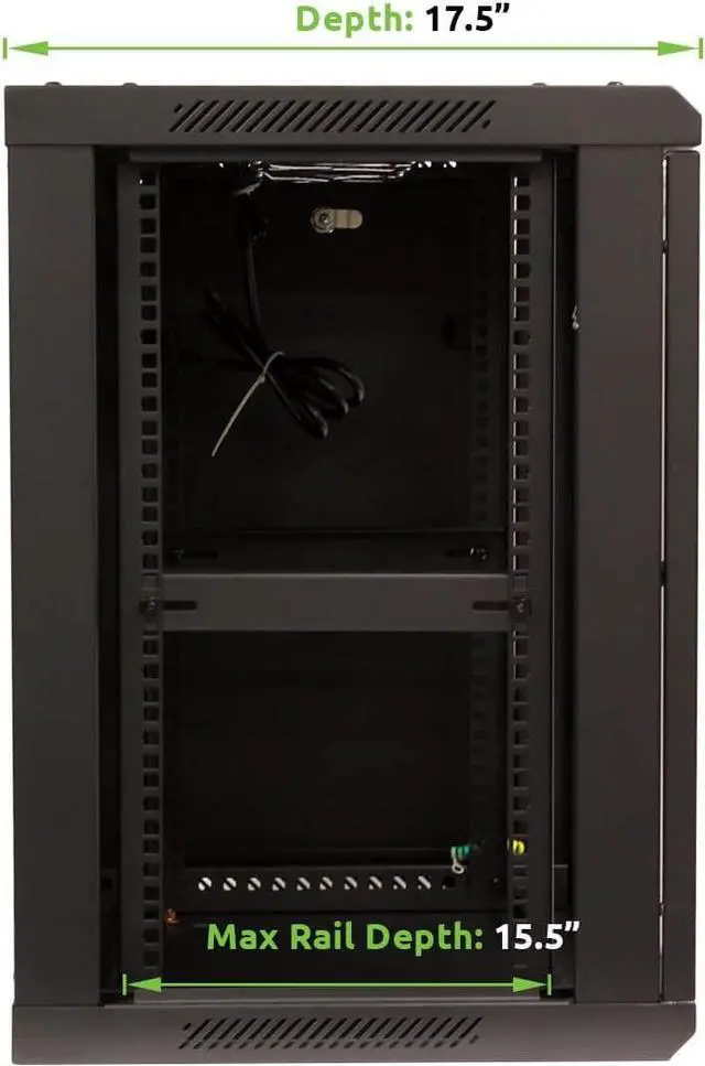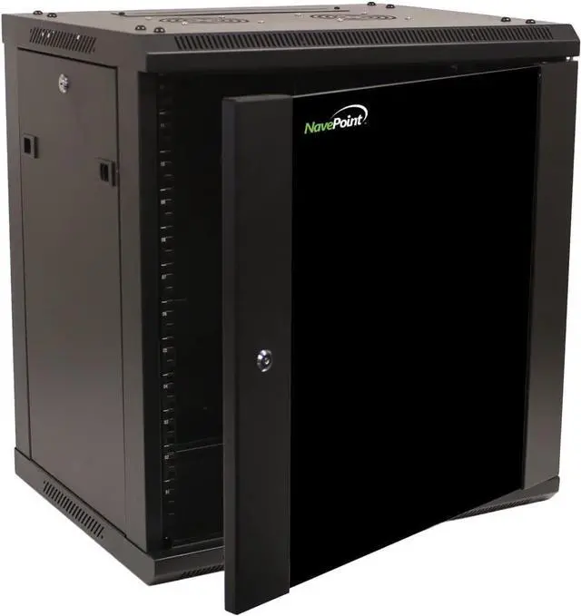 This 450mm depth cabinet with 12U of rack space by NavePoint is part of the Performance Series and can be wall-mounted or self standing. It has removable, locking side panels for easy access, an L-shaped spring pin for fast door opening direction changes, and (2) built-in fans to keep your equipment cool.