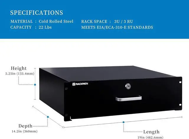 3U Rack Mount Drawer for 19 Inch AV/Network/DJ Equipment Racks or Cabinets with Lock and Key