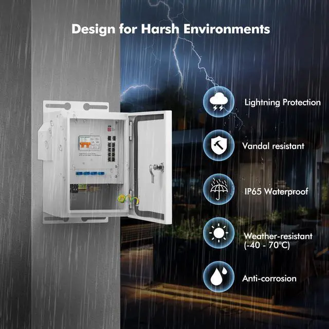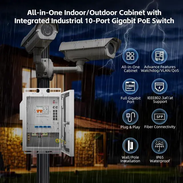 | EMC & Ingress Protection | IP Level: IP65; Surge protection of Power: IEC 61000-4-5 Level X(8KV/6KV); Surge protection of Ethernet port: IEC 61000-4-5 Level X(8KV/6KV); RS: IEC 61000-4-3 Level 3(10V/m); EFI: IEC 61000-4-4 Level 3(1V/2V); CS: IEC 61000-4-6 Level 3(10V/m); PFMF: IEC 61000-4-8 Level 4(30A/m); DIP: IEC 61000-4-11 Level 3 (10V); ESD: IEC 61000-4-2 Level 4(8K/15K) |