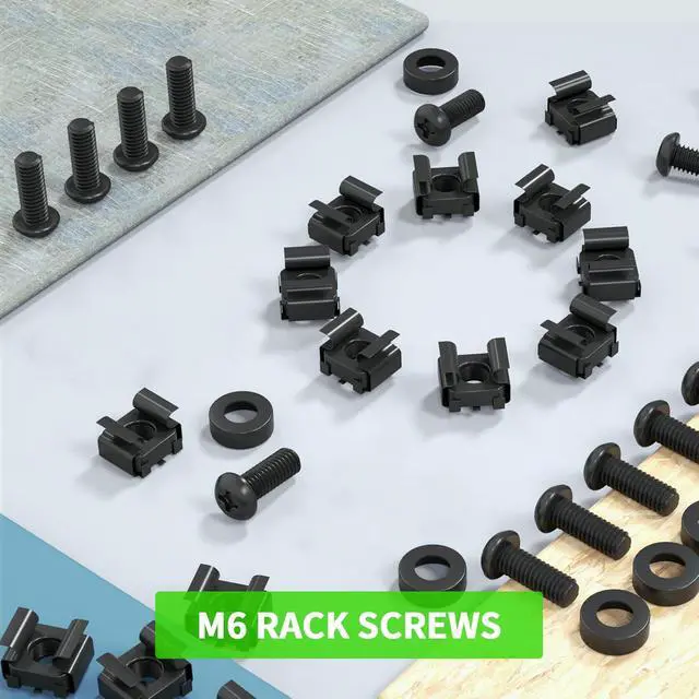 50 PACK M6 x 16mm Rack Mount Cage Nuts, Screws and Washers for Rack Mount Server Cabinet, Rack Mount Server Shelves, Routers, Rack Mount Screws and Square Insert Nuts, Self-Locking Cable Ties for Free
