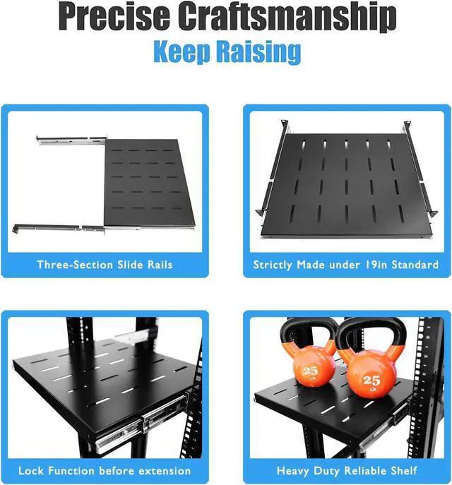 Raising Electronics Sliding Rack Server Shelf 1U 19'' 4 Post Rack Mount-Adjustable 15''-22''