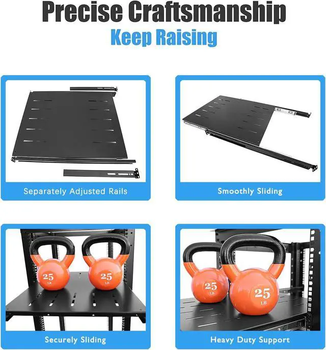 RAISING ELECTRONICS Sliding Fixed Rack Server Shelf 1U 19inch 4 Post Rack Mount-Adjustable 24inch-32inch