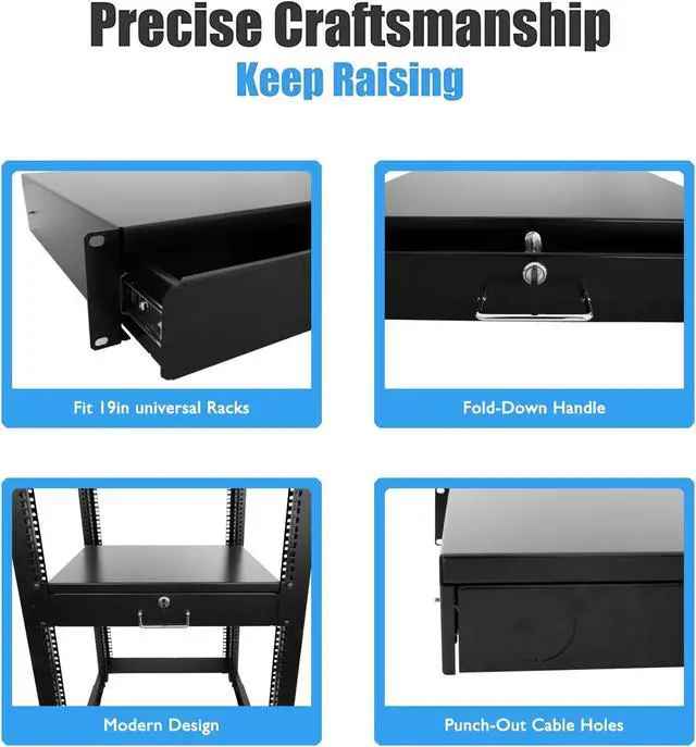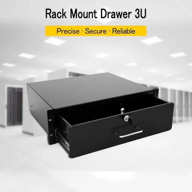 RAISING ELECTRONICS Drawer Server Cabinet Case 19 Inch Locking Rack Mount DJ Lockable Deep Drawer with Key (3U)