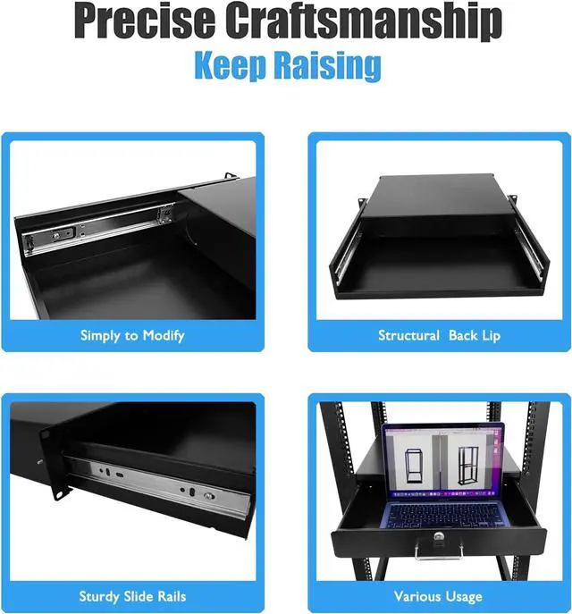 RAISING ELECTRONICS Drawer Server Cabinet Case 19 Inch Locking Rack Mount DJ Lockable Deep Drawer with Key (4U)