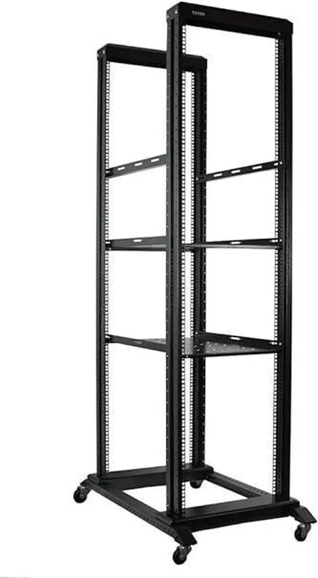 Raising Electronics Server Rack Open Frame Rack 4 Post 19 inch Adjustable Server/Audio Rack Cold Rolled Steel with 3 Shelves (42U,24Depth)