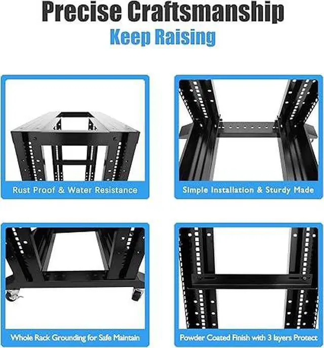 Raising Electronics Server Rack Open Frame Rack 4 Post 19 inch Adjustable Server/Audio Rack Cold Rolled Steel(15U,31 Depth)