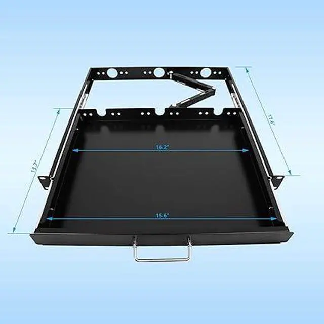 • 3. Self Dimension: W: 17.5" D: 14" H: 1.75"(1U) - Tray size: 16.5x12.5x1.5.