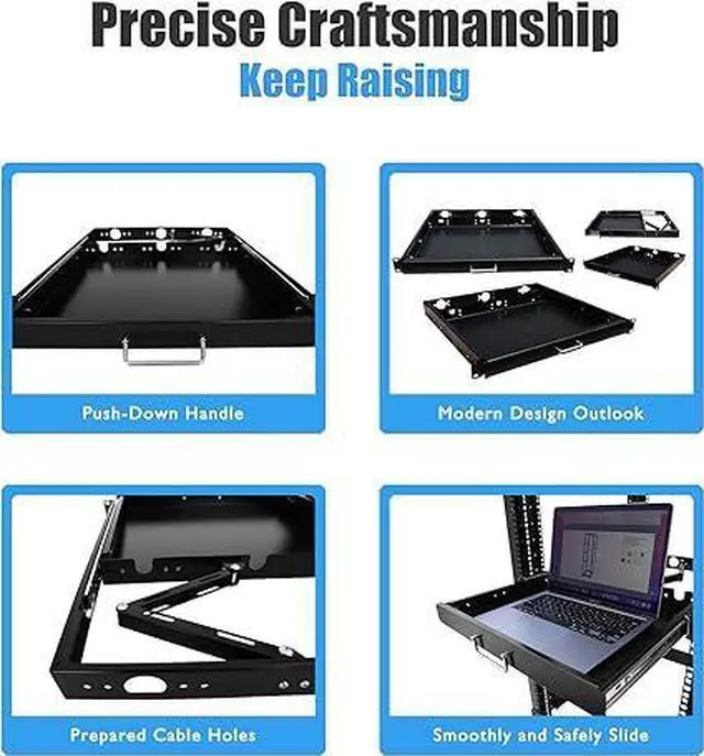RAISING ELECTRONICS 1U Rack Mount Sliding Keyboard Tray Cantilever for Server Data Network Rack