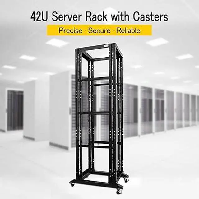 RAISING ELECTRONICS 42U 4 Post Open Frame 19inch Server/Audio Steel Rack 24inch Deep Aluminum UL Certified