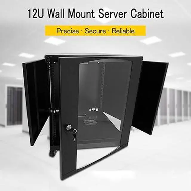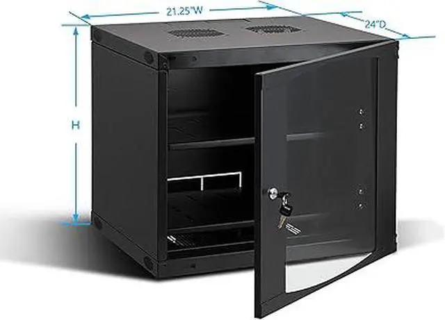 Raising Electronics 15U Server Cabinet Wall Mount Network Rack Enclosure with Caster Wheels, Includes 2 Fans and Lockable Glass Door, Network Cabinet 24 Deep, Server Rack for IT Equipment