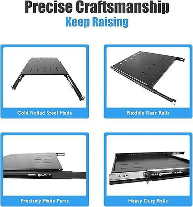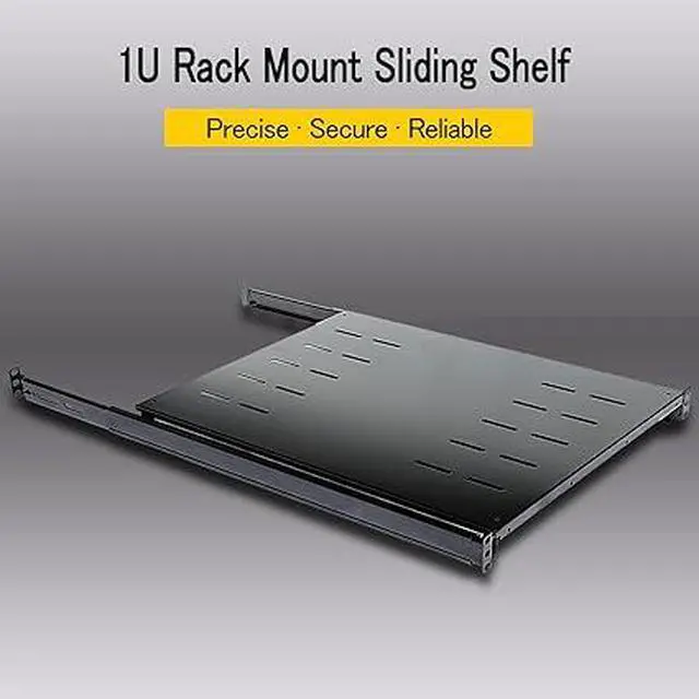RAISING ELECTRONICS Sliding Fixed Rack Server Shelf 1U 19inch 4 Post Rack Mount-Adjustable 24inch-32inch