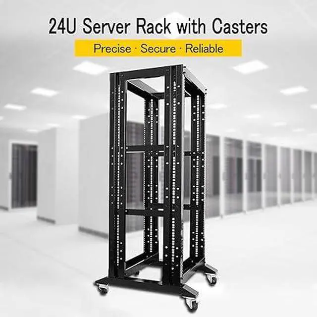 RAISING ELECTRONICS 24U 4 Post Open Frame Network Server Rack 19inch Width 600mm deep with 3 Pairs of L Rail