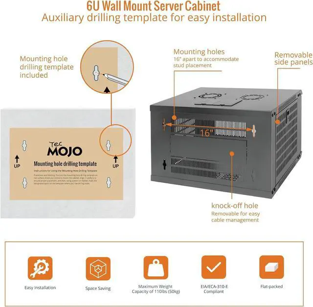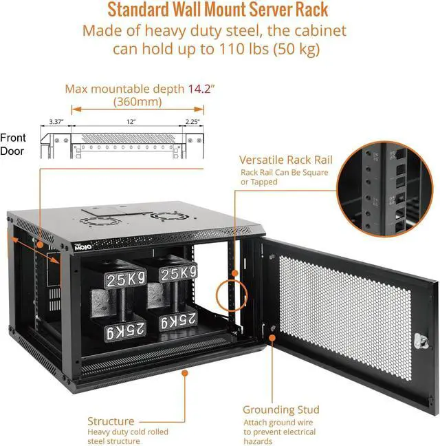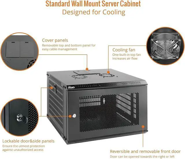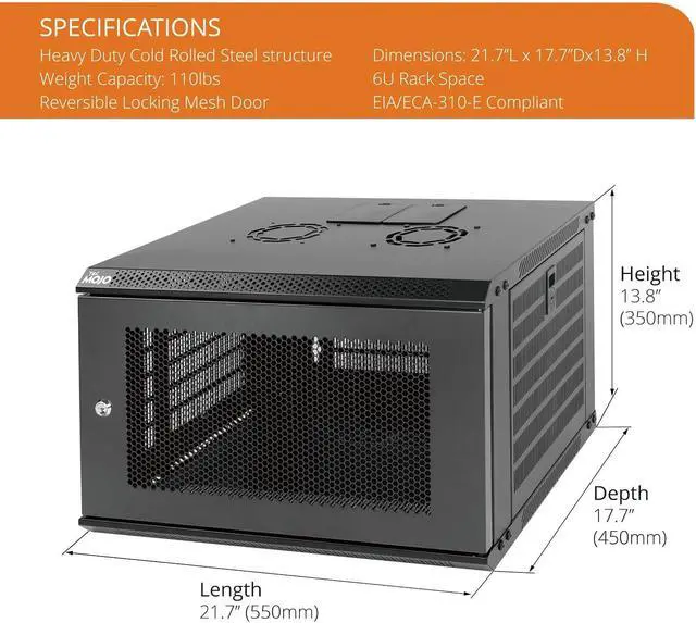 Save valuable floor space: 6U wall mount server cabinet Dimensions: 13.78" H x21.65" W x17.72" D.Maximum mounting depth is 14.2"