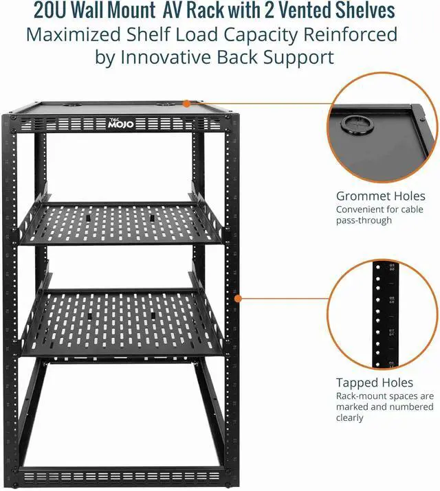Tecmojo 20U Open Frame Network Rack for IT & AV Gear, AV Rack Floor Standing or Wall Mounted,with 2 PCS 1U Rack Shelves & Mounting Hardware,Network Rack for 19" Networking,Audio and Video Device