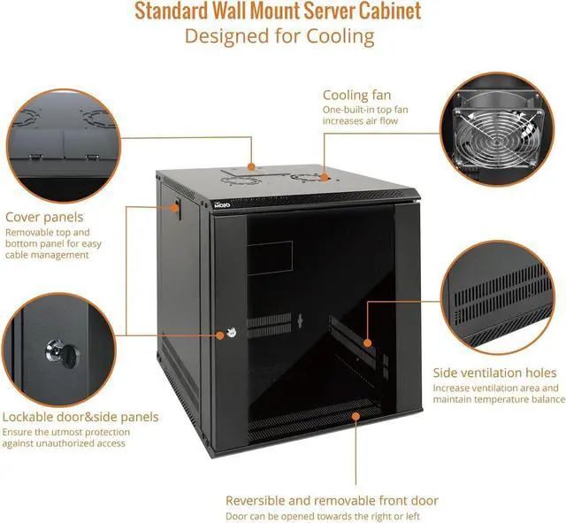 Keep critical network equipment secure: glass door and side panels are lockable to prevent unauthorized access; Front door can be installed on either side of the front of the cabinet to satisfy your door swing orientation preference