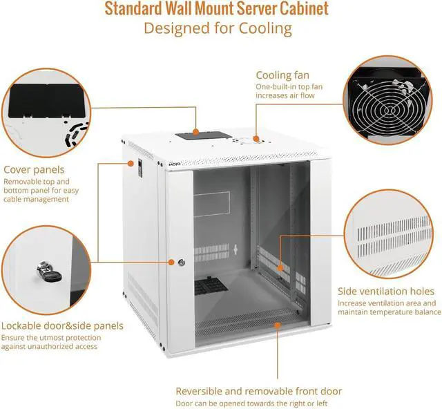 Keep critical network equipment secure: glass door and side panels are lockable to prevent unauthorized access; Front door can be installed on either side of the front of the cabinet to satisfy your door swing orientation preference