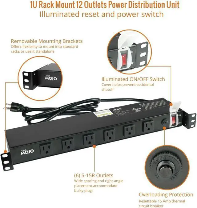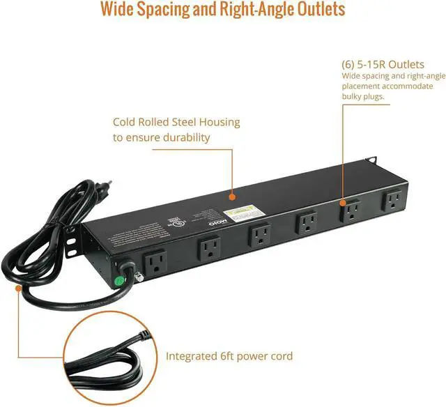 Built-in Circuit Breaker: The PDU is equipped with a built-in 12-amp circuit breaker that protects against circuit overloads. This ensures reliable performance and helps prevent damage to your equipment.