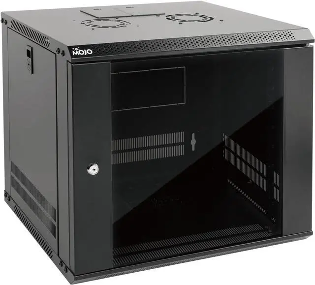 Tecmojo 9U Wall Mount Server Cabinet IT Network Rack Enclosure Lockable Door and Side Panels Black,Cooling Fan, Glass Door, 17.7inch Depth,for 19 IT Equipment, A/V Devices