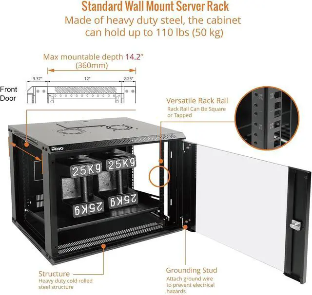 Save valuable floor space: 9U wall mount server cabinet Dimensions: 19.02" H x21.65" W x17.72" D.Maximum mounting depth is 14.2"