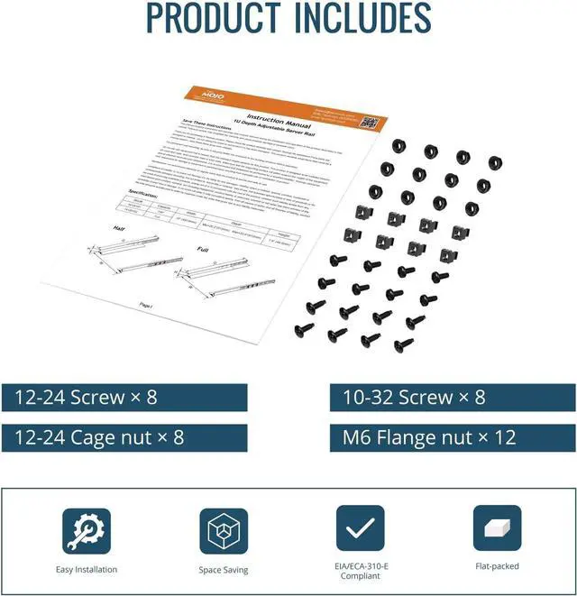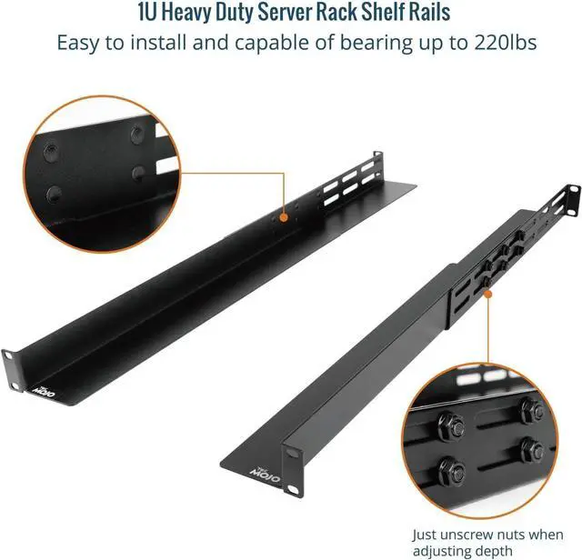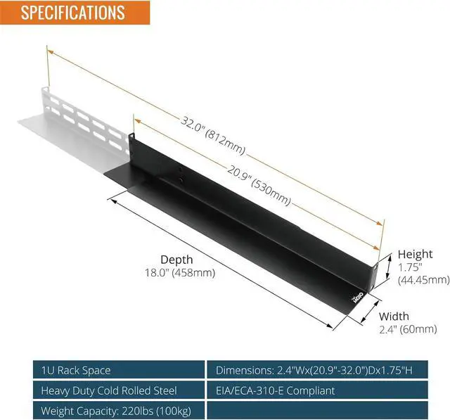 Flexible Depth: Server rack shelf rail with adjustable depth from 20.9 to 32",suitable for racks of different depths