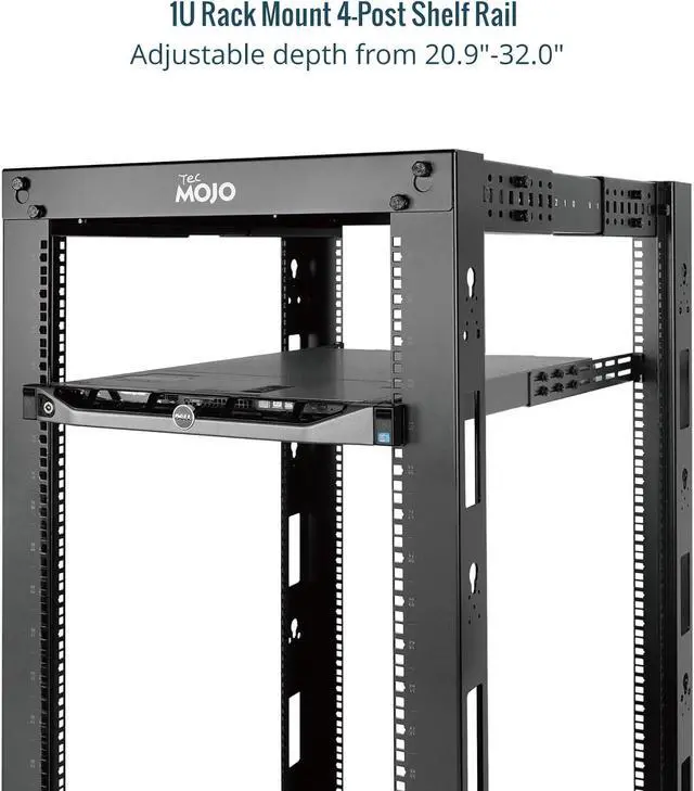 Tecmojo Universal 1U Rack Mount Rail,4-Post Fully Server Rack Shelf Rail with 20.9"-32" Adjustable Depth, Fit for Non-Rack Mountable Server/Networking/AV/IT Equipment