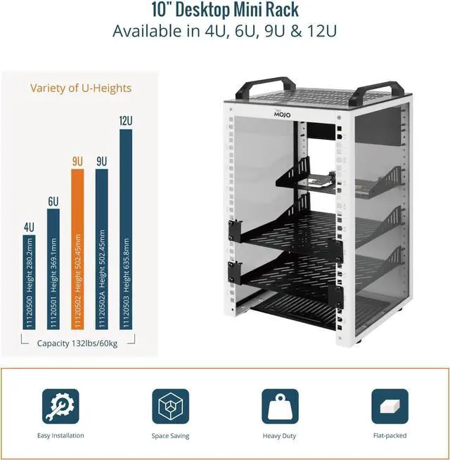 Compact 10-Inch Width & 6U Height: This mini rack is designed for efficient equipment organization, featuring a space-saving 10-inch width and standard 6U height - ideal for desktops, home labs, small offices, or AV setups
