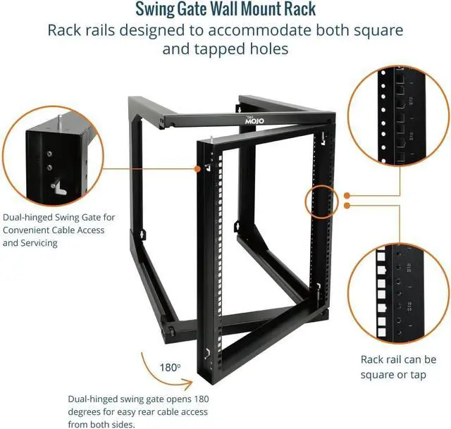 Design Features: Open Frame structure of wall mount server rack, optimized heat dissipation; 180 degrees swing gate for rear cable access from both sides