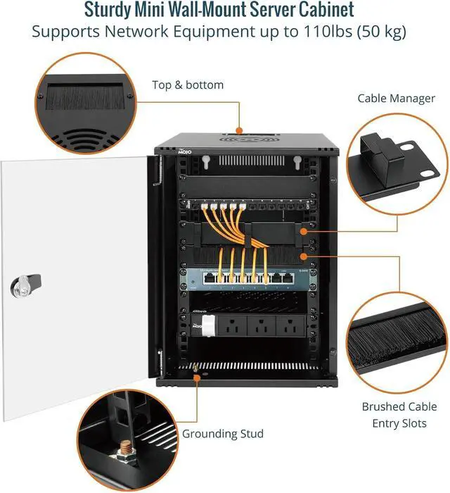 Enhanced Cooling & Security: Vented side slots improve airflow and prevent overheating; lockable front door safeguards sensitive connections