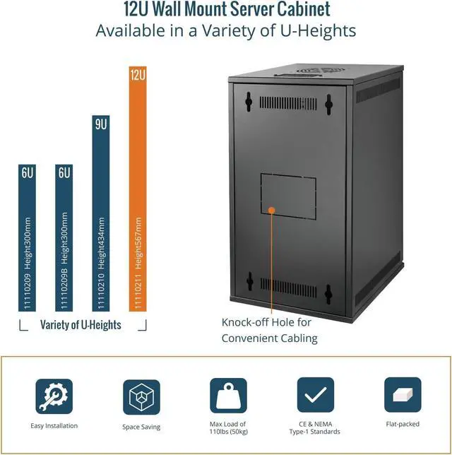 Industry Compliant: 6u 10 inch wall mount cabinet meets CE and NEMA Type-1 standards, ideal for network racks, server cabinets, telecom, AV equipment, and professional data closets