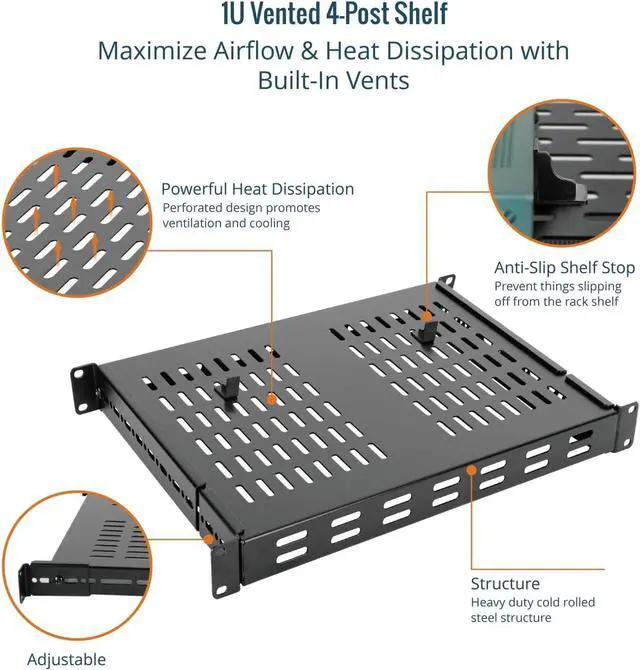 Sturdy and Durable:Constructed with SPCC commercial cold rolled steel, this fixed rack mount shelf supports up to 242lbs,especially for heavy IT equipment like tower server, UPS,NAS,amplifier and so on