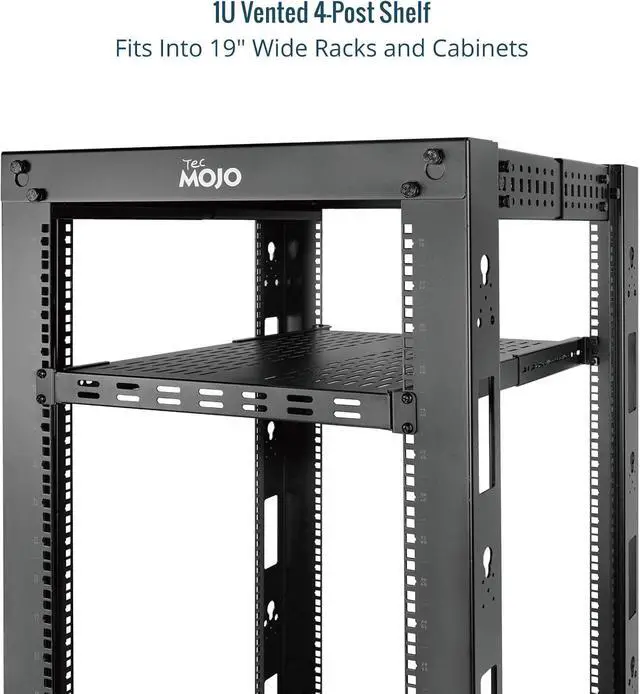 Tecmojo 1U 4-Post Vented Server Rack Mount Shelf,13.8in Deep with Adjustable Depth 13.8-23.6inch,Supports to 242 lbs,Universal Tray for 19 Inch AV/Network Equipment Rack,Black