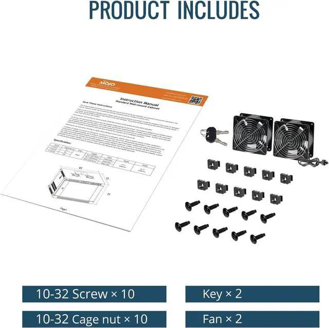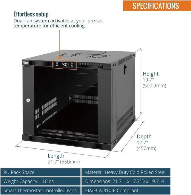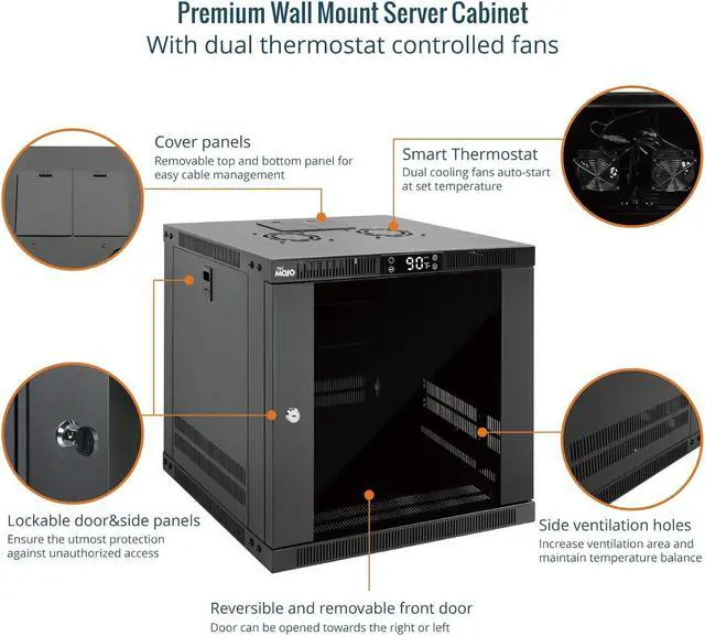 Thermostat-Controlled Cooling: Dual quiet fans automatically activate at preset temperatures, providing efficient airflow to reduce internal heat and extend the lifespan of your servers, switches, patch panels, and other rack-mounted devices