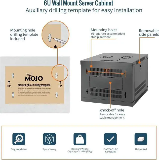 Universal Compatibility:Server rack supports all standard 19" rackmount devices, including servers, network switches, DVRs, and audio equipment. Includes mounting hardware. Available in 6U, 9U, and 12U sizes