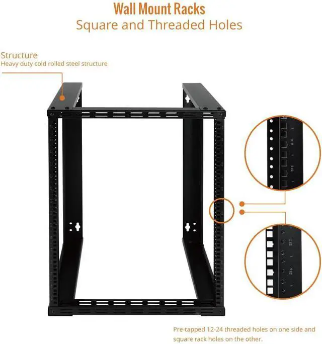 1. Sturdy: Open Frame Server Rack made from Cold Rolled Steel; Rear brackets enhance stability; Weight capacity of 110lbs; Electrostatic powder coat preventing rust and corrosion