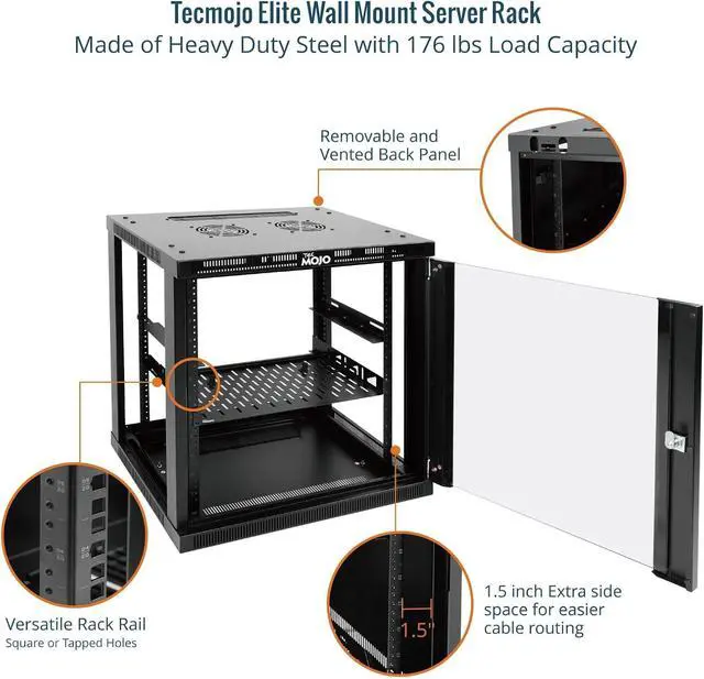 Tecmojo 12U Wall Mount Rack Cabinet, Heavy-Duty 176 Lbs High Load Capacity, 19 Enclosed Server Network Rack with Glass Door, 17.7 Deep Elite Collection