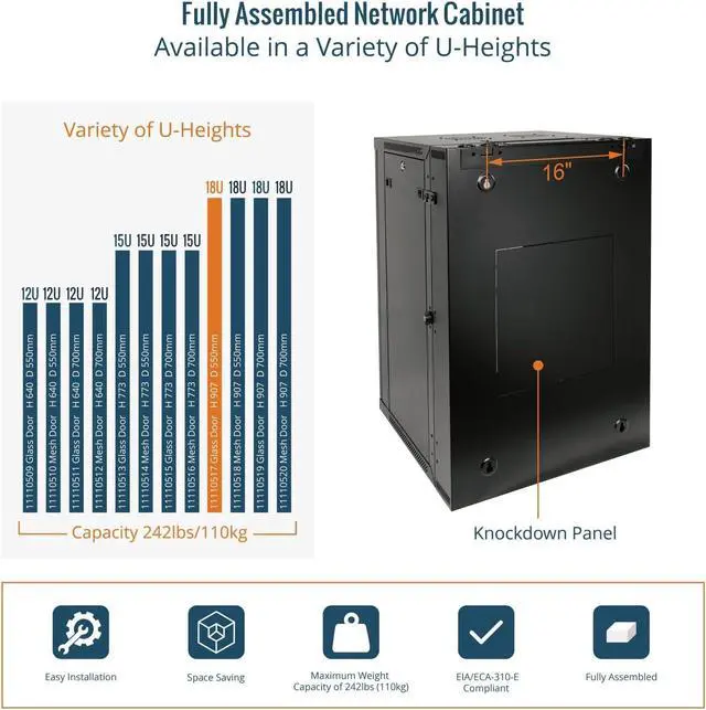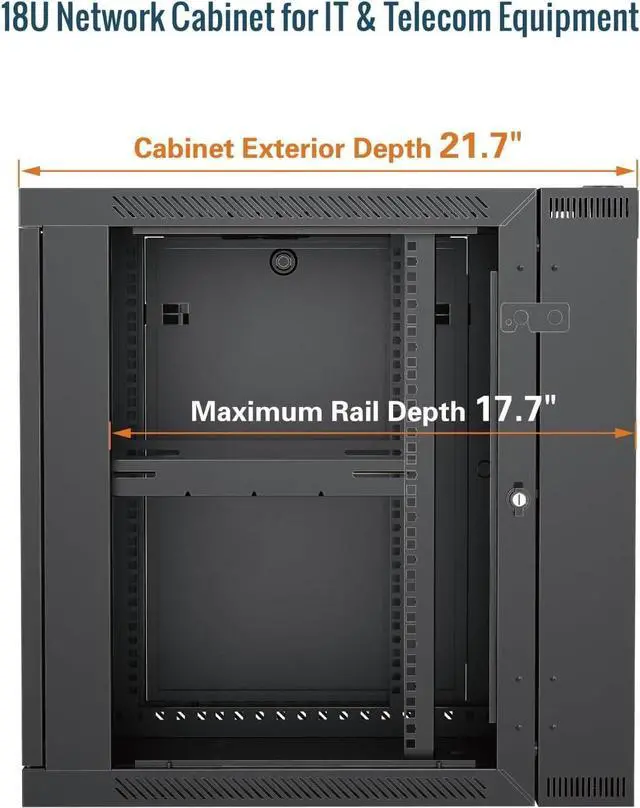 Durable: Fully Welded Wall Mount Server Cabinet is made from heavy duty Cold Rolled Steel; Weight capacity up to 242lbs(110kg); Electrostatic powder coat preventing rust and corrosion; (whole)Mountable depth 17.71in(450mm)