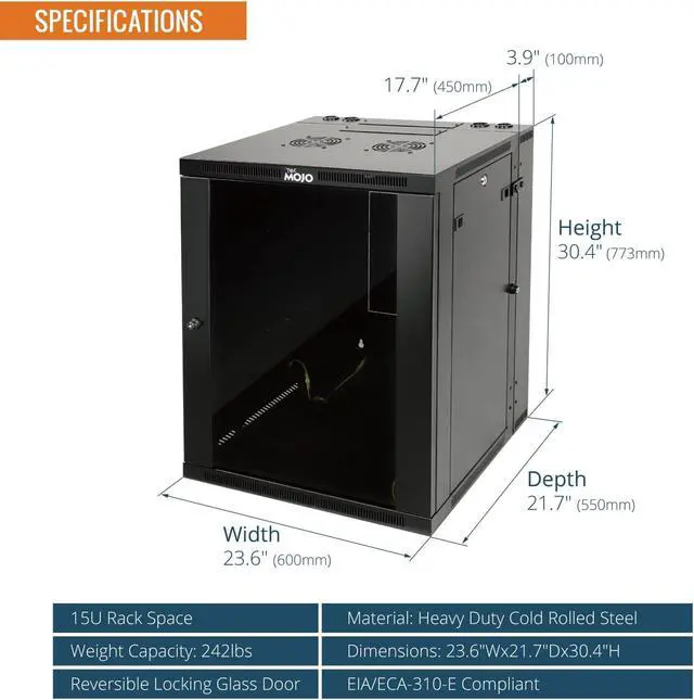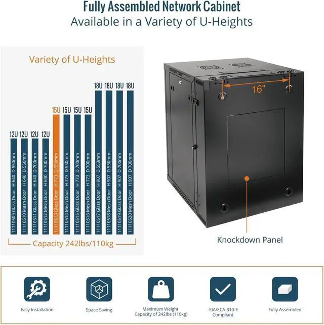 Durable: Fully Welded Wall Mount Server Cabinet is made from heavy duty Cold Rolled Steel; Weight capacity up to 242lbs(110kg); Electrostatic powder coat preventing rust and corrosion; (whole)Mountable depth 17.71in(450mm)