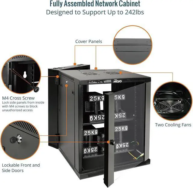 Powerful Heat Dissipation: Network Cabinet is equipped with two cooling fans; Both the front and side panels have upper and lower rows of vents