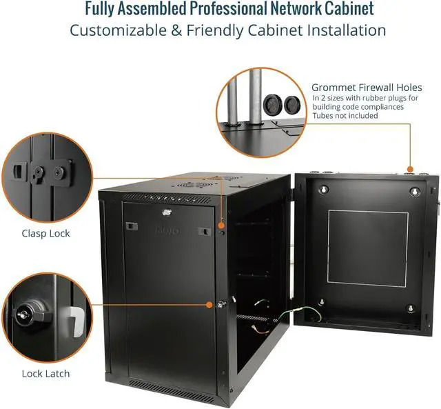 Thoughtful Design: Server Rack Cabinet with removable top cover, back cover and swing gate back door facilitate ventilation and cable management; Built-in L Brackets support non rack-mountable equipment; Two kinds of fireproof wall holes of sealing rings of different sizes with rubber plugs excluding tubes