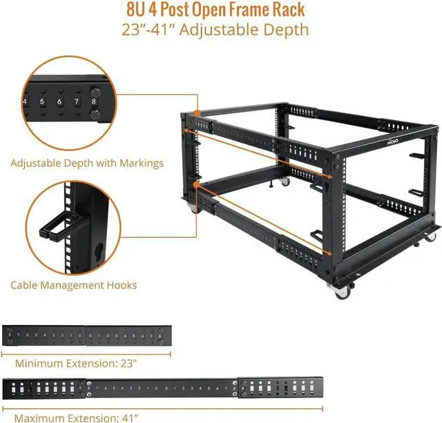 Flexible Use: Adjustable depth from 23.46 to 41.49in,meeting the storage needs of equipment in different depths; equipped with extra cable management hooks for cable mangement