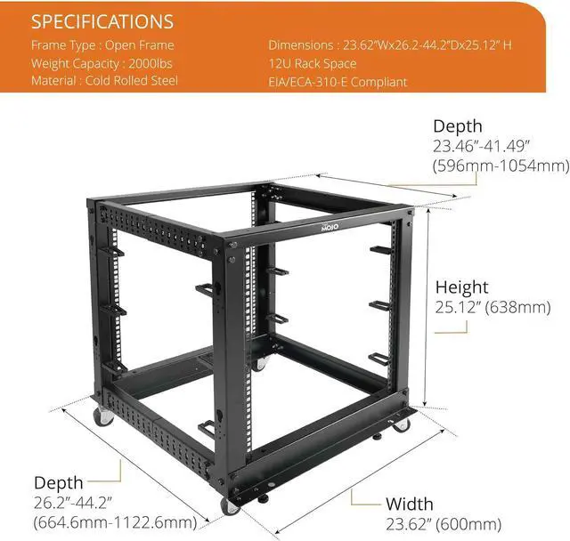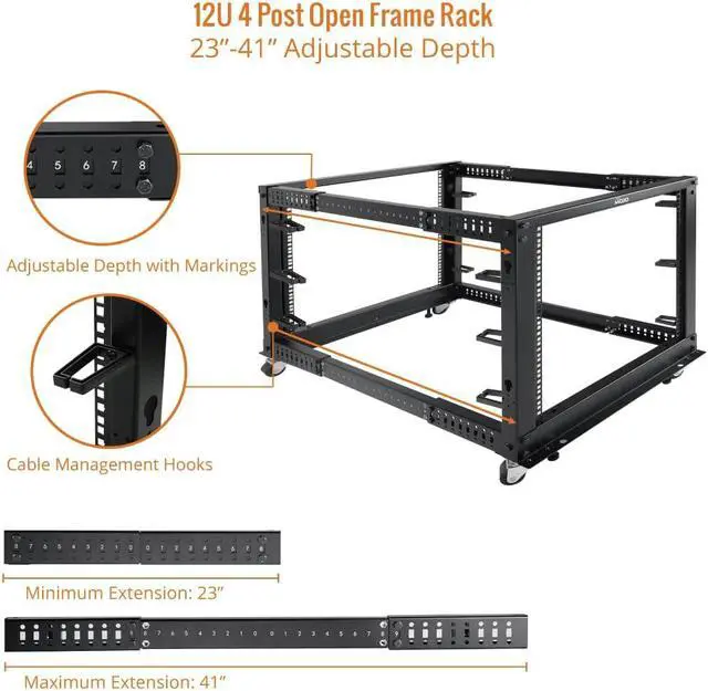 • Flexible Use: Adjustable depth from 23.46 to 41.49in,meeting the storage needs of equipment in different depths; equipped with extra cable management hooks for cable mangement