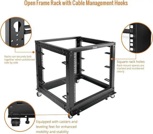 • Durable: Open frame server rack made from 2.0mm heavy duty cold rolled steel;Weight capacity is up to 2000lbs; Electrostatic powder coat preventing rust and corrosion