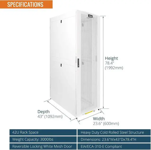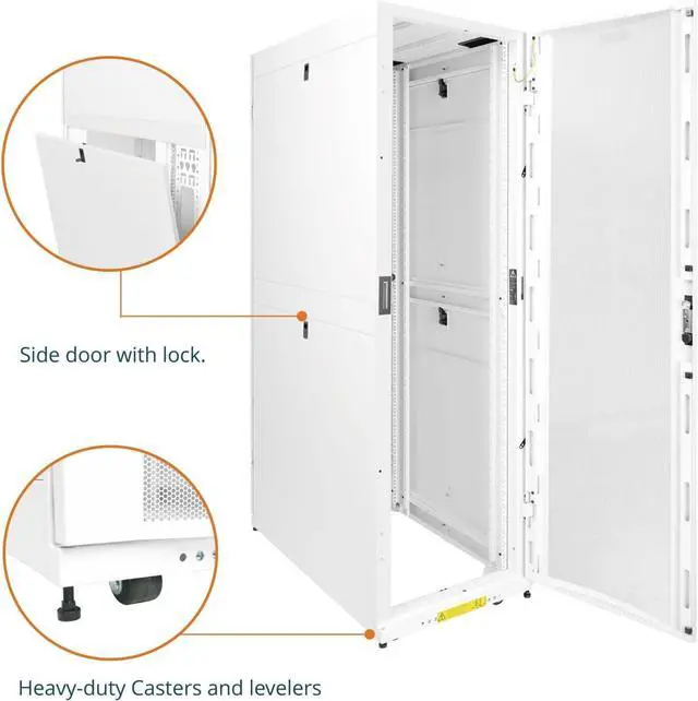 3. This 42U network cabinet is designed for secure, high density networking and IT applications with lockable, removable and reversible front and back doors. The curved mashed doors increase airflow to promote passive cooling