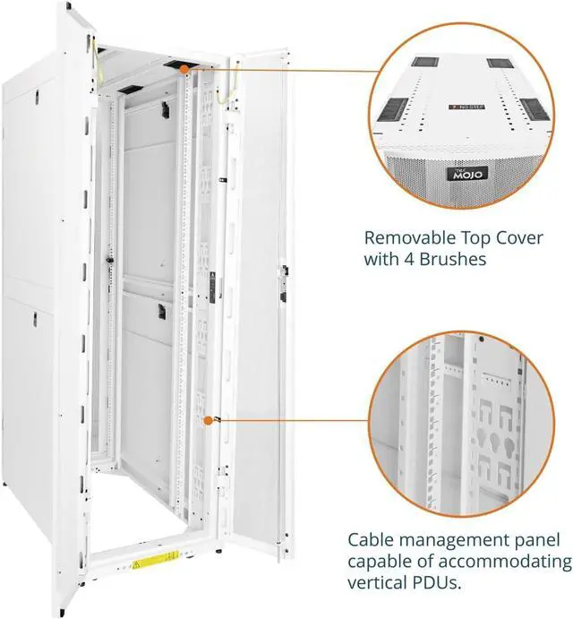 • Tecmojo network server cabinet is designed to provide a high quality and secure installation solution for storage of all EIA-310-E compliant 19-inch mounting width networking equipment such as severs, computer, routers, patch panels, PDUs and more.