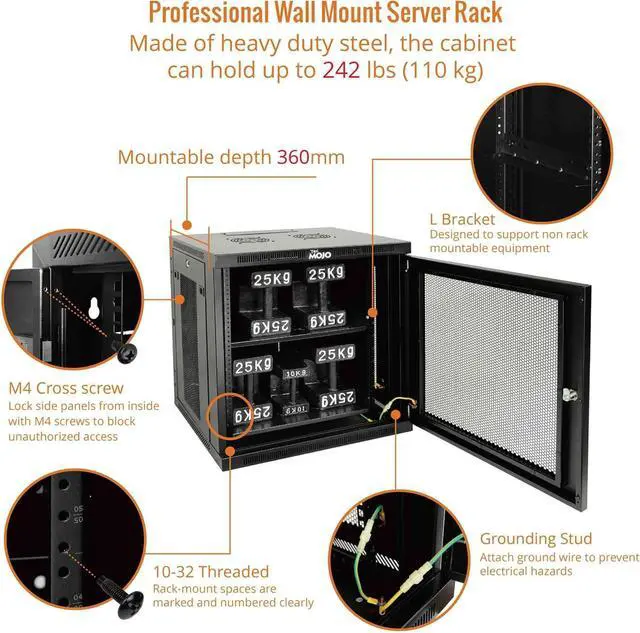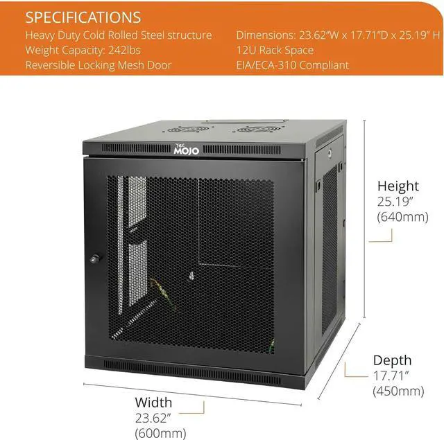 Premium Steel Construction: 22u server rack is built from high-quality cold-rolled steel with a durable powder-coated finish, the Tecmojo Elite Series cabinet supports up to 176 lbs when wall-mounted and 350 lbs when floor-mounted, ensuring a robust housing solution for IT and server equipment
