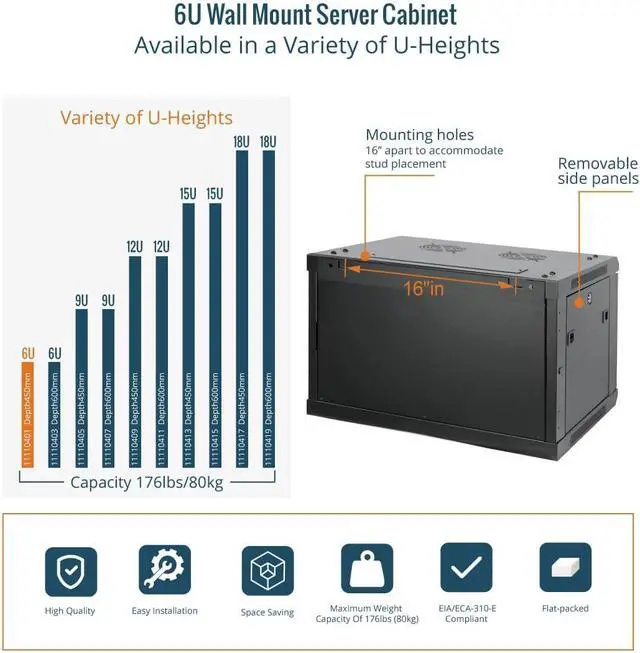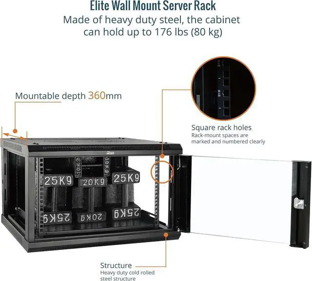 Robust Construction: This server rack is made of heavy duty cold rolled steel, weight capacity is up to 176lbs(80kg),14.2(360 mm) ; Electrostatic powder coat preventing rust and corrosion