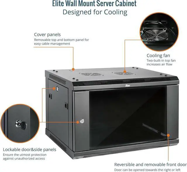 Convenient Access And Security : Removable covers at the top and bottom of wall mount server cabinet allow cables to pass through; Lockable side panels and front door increased security