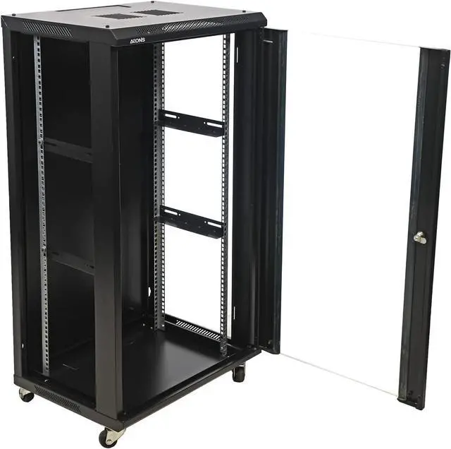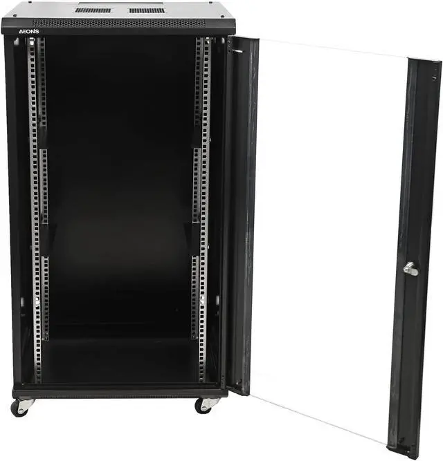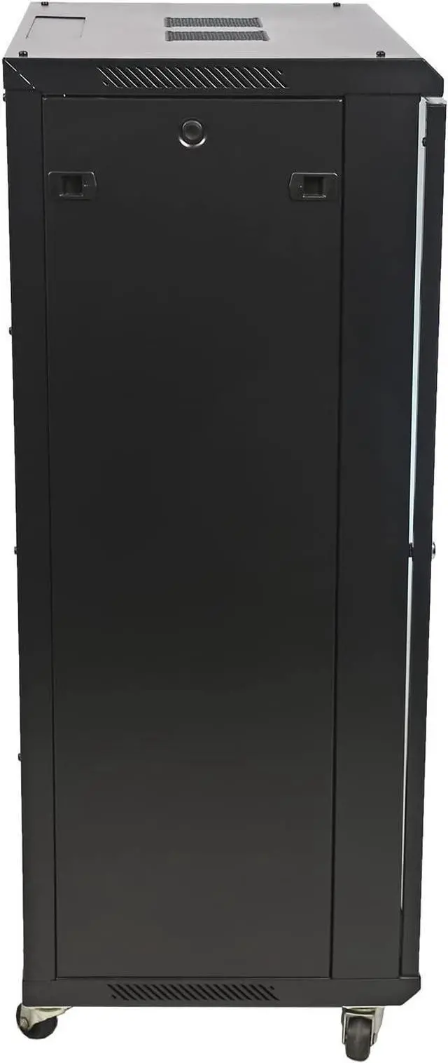 Installation of accessories and monitoring of IT equipment are simplified through removable side panels. Either wall mounting or floor standing with casters.