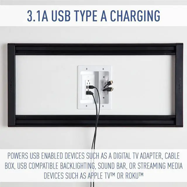 Legrand - OnQ In Wall Cable Management Kit with USB, TV Outlet Wall Kit Hides Cords, In Wall TV Power Kit Works with All Plugs, Recessed TV Outlet, White, HT21USBWHV1 (Hardwired)
