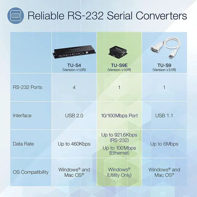 Remotely connect and configure your serial device over your local network Easy setup with software or web browser Supports virtual serial port, DHCP server and TFTP Rugged and durable metal housing Software utility included